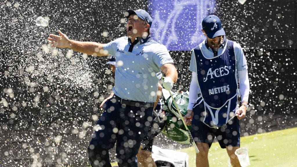 The post WATCH: Patrick Reed showered in beer after ace on raucous LIV hole appeared first on Golf.
