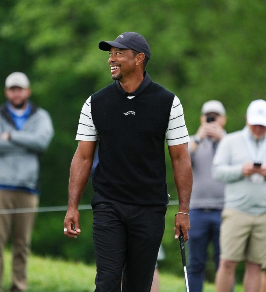 TigerWoodssmiledashisgroupapproachedthe5thgreenduringapracticeroundinthePGAChampionshipattheValhallaGolfCourseinLouisville,Ky.onMay.14,2024.“Wehavehadconversationsformonths,”Waughsaid.“WehavealsohadconversationsattheRyderCupCommittee,multipleconversationsaboutpotentialcaptainsandalistofpotentialcaptains.